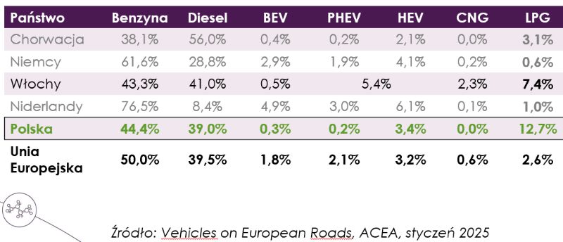 W Polsce 12,7% zarejestrowanych samochodów jest zasilanych LPG, podczas gdy we Włoszech odsetek ten wynosi 7,4%. To dwa największe rynki europejskie w zakresie konsumpcji i użytkowania autogazu. Według statystyk Europejskiego Stowarzyszenia Producentów Samochodów ACEA autogaz pozostaje najbardziej rozpowszechnionym w Unii paliwem alternatywnym – po europejskich drogach wciąż porusza się przeszło o połowę więcej samochodów osobowych na LPG niż elektrycznych1.