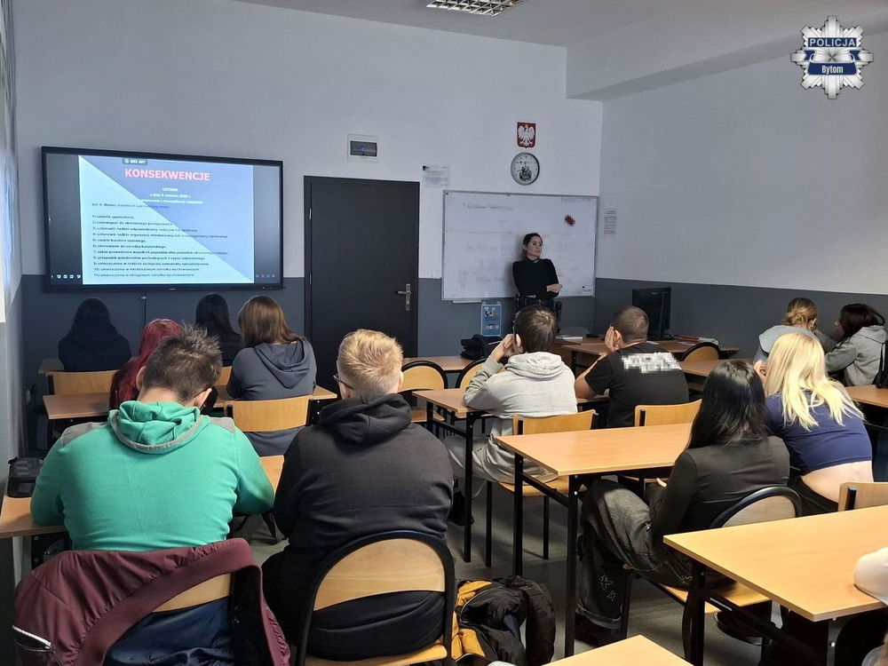 W szkole branżowej w Bytomiu policjantka zajmująca się profilaktyką przeprowadziła prelekcję dla młodzieży na temat odpowiedzialności prawnej nieletnich oraz przeciwdziałania przemocy rówieśniczej. Zajęcia odbyły się w ramach kampanii Dzieciństwo bez przemocy, która ma na celu zwiększenie świadomości społecznej oraz promowanie szacunku i empatii wobec dzieci.